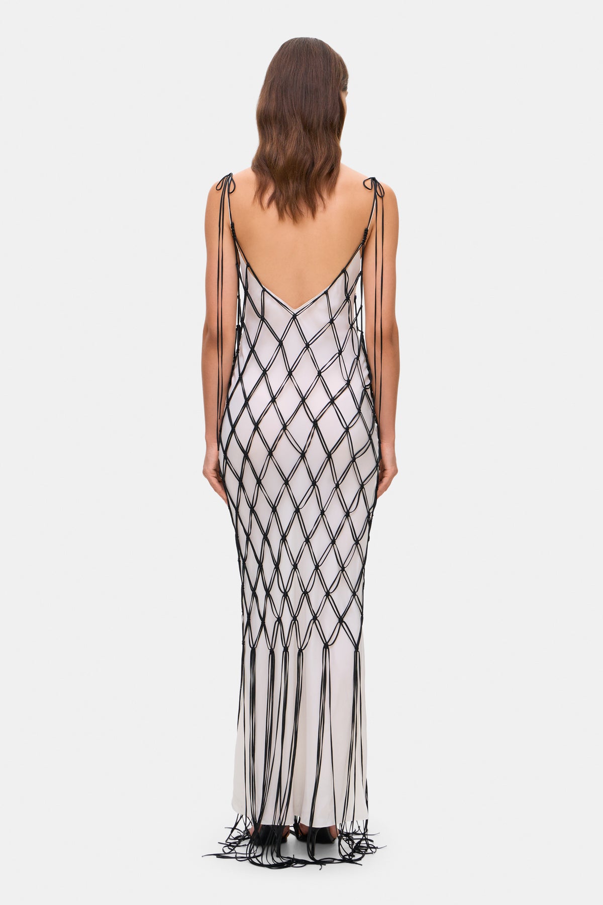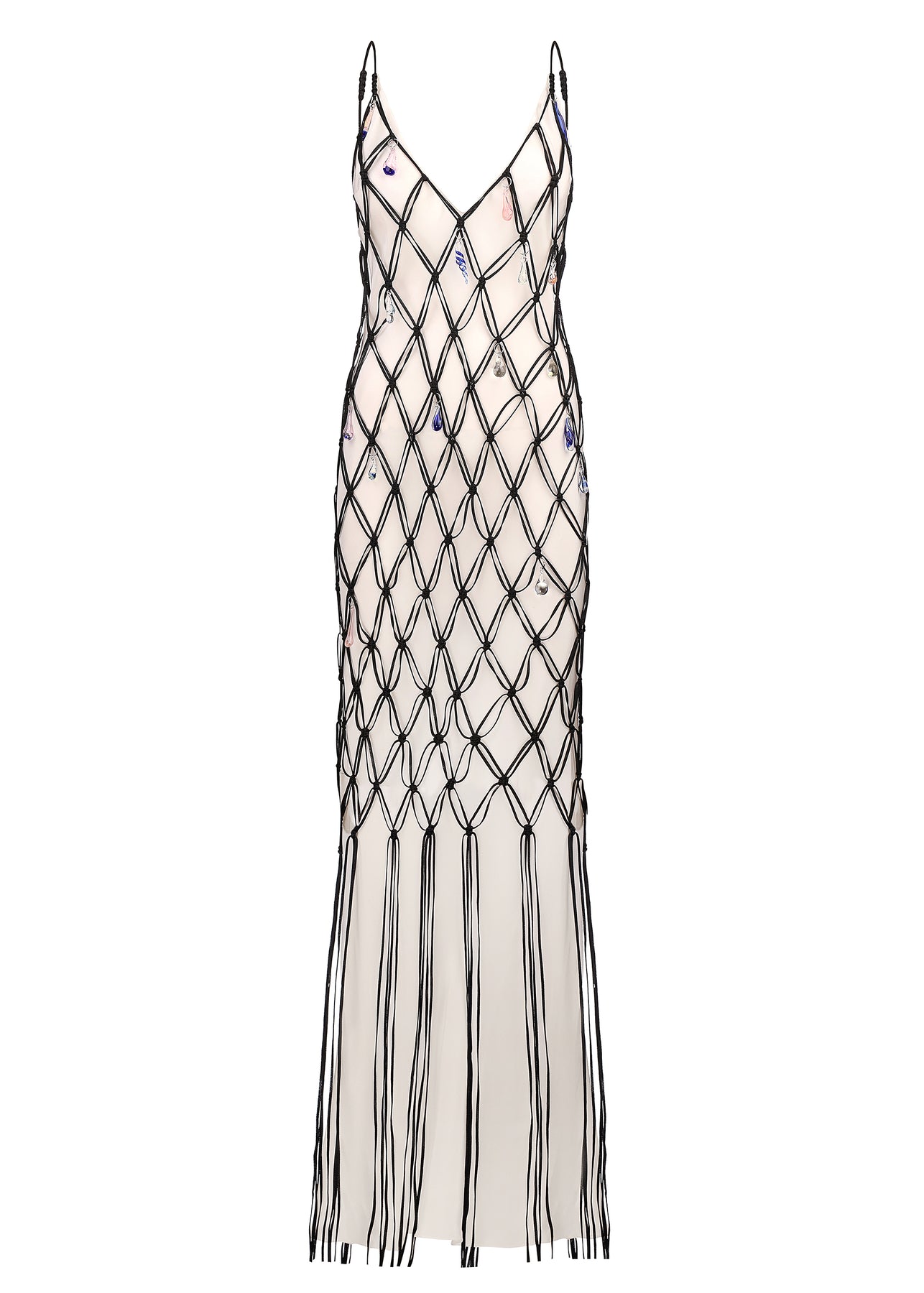 בגימור מבריק, עם רשת מעוטרת חרוזים מעליה