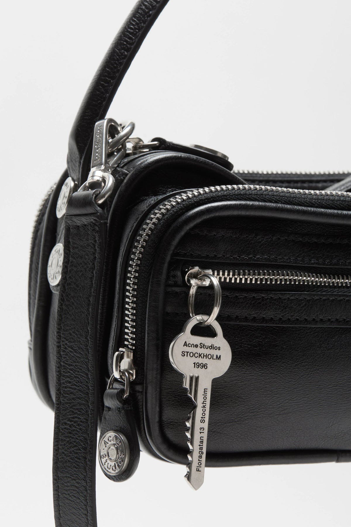 שלושה כיסים עם רוכסן בחזית, תליון מפתח על הרוכסן, כיס עם רוכסן בגב התיק