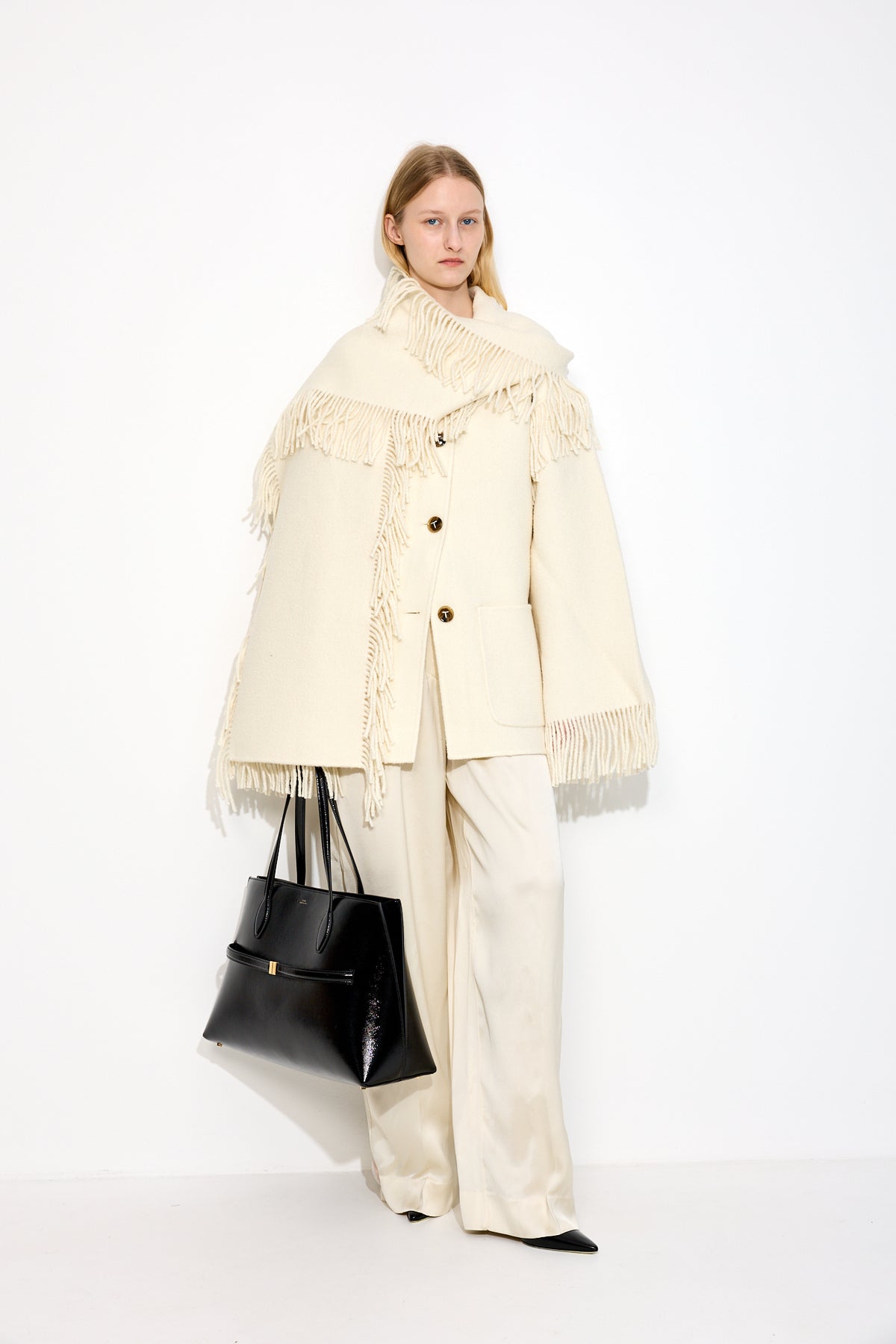 עם פרנזים בשרוולי ובצעיף עשוי מתערובת צמר